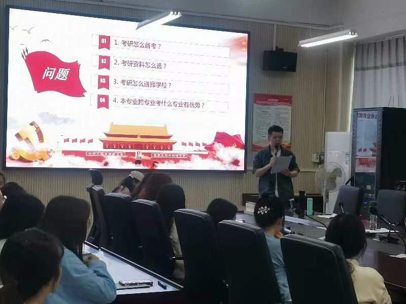 4月26日我院召开考研辅导宣讲会。会上李响、李月调等二位博士分别就有关硕士研究生考试的备考、资料选取、学校选择和跨专业考研等问题进行了分析和讲解。参加这次活动的有学院2019、2020级旅游管理专业和航空服务艺术专业的部分本科生。